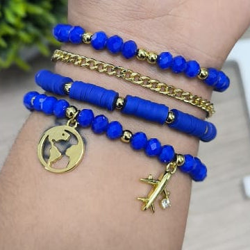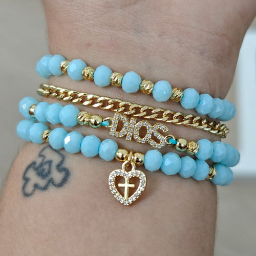 Dios y cruz con brillo - Set de pulseras - Celeste -